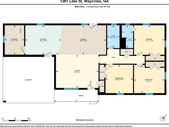 Here's a charming and well kept 3 bedroom, 2 bath brick home on large lot. This brick home is clean, affordable, and ready for its new owners. Step onto the inviting front porch and inside to a living and dining combo with nice laminate flooring and an open concept layout. The kitchen features tile flooring, oven/range, refrigerator, dishwasher and eat-in bar. A nice sized laundry room with cabinets provides extra storage and convenience. The master bedroom has wood laminate flooring and master bath with tiled shower. The additional bedrooms also feature wood laminate flooring. Guest bath has some handicap accessibility and a tiled shower. Outside, enjoy a large fenced backyard with plenty of room for children, pets or gatherings, plus a storage building with power for hobbies or equipment. Property also offers a covered double carport for parking. This home is the perfect blend of comfort, function, and affordability - don't miss the chance to make it yours!!! Recent updates include a brand new roof (July 2025). Property is county water/county sewer and GA Power.