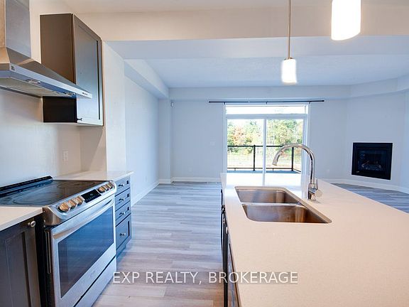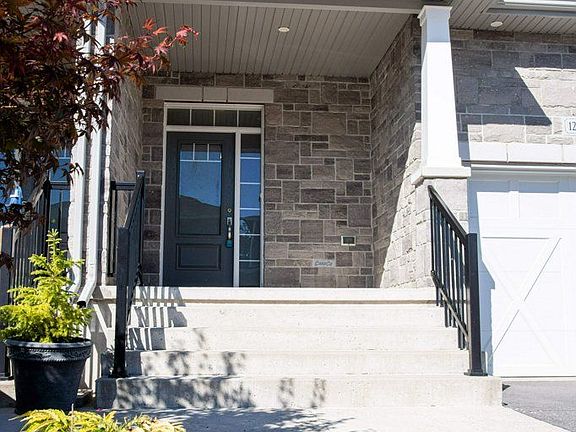 This 3-bedroom, 2.5-bath townhome in popular Trails Edge offers 1,682sq/ft of well-planned living space. Features include 9-foot ceilings on the main floor, ceramic tile foyer, laminate flooring in principal rooms, and a spacious living room with pot lights, corner gas fireplace, and patio doors to the backyard. The open kitchen boasts a large centre island with sink and excellent layout for entertaining. Convenient main floor laundry/mudroom. The primary bedroom includes a walk-in closet and 4-piece ensuite bath. Additional features: basement bathroom rough-in, patio door walkout, HRV system, and glass-railed rear deck. Close to parks, trails, shopping, restaurants, schools, and Highway 401 access.Property sold as-is, where-is. No representations or warranties. Offers subject to solicitor review.
