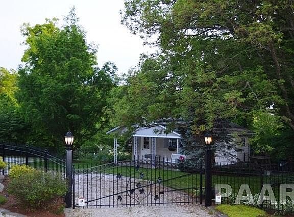 Absolutely stunning ranch with season river view nestled on approximately 1.5 acres surrounded by trees and terraced land with wrought iron fencing and electronic gate plus an additional 1.5 detached garage ideal for a workshop. The totally updated kitchen features stainless steel appliances, granite counters, and hardwood floors. The family room is the perfect spot the kick back and watch some television or have a seat in the living room where you having stunning views. The finished walkout basement takes you by the tiered patios where you can start a fire in the firepit.