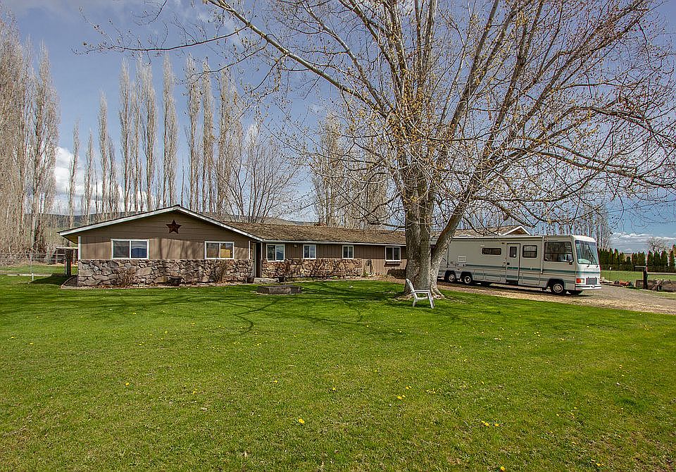 Peaceful, tucked away West Valley Ranch Home on 5 + Acres in beautiful countryside setting. Features include 4 bedrooms, 3 baths, fenced pasture for horses and other livestock, barn with 12 foot overhangs (water and electricity), 55 foot round pen, above ground pool, covered patio, 5 horse pump 210 foot deep irrigation well, detached over-sized two car garage with workbench. Recently re-conditioned cedar shake roof, remodeled kitchen, new flooring, new interior and exterior doors.