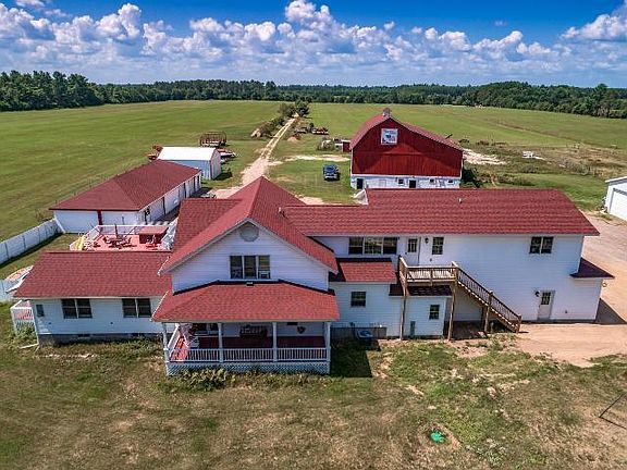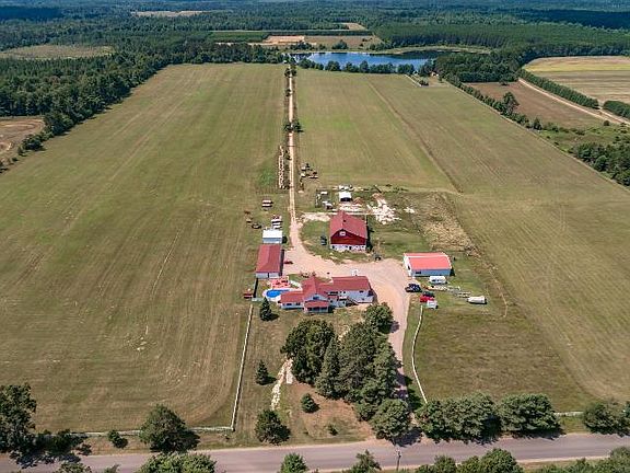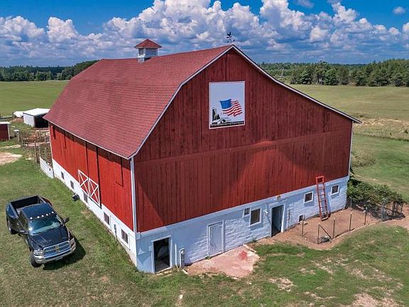 Picturesque waterfront 71+ acre hobby farm w/barn, det'd & att'd garages, outbuildings, pole buildings & lakeside bunkhouse. This iconic property boasts a beautiful rambling 1940's farmhouse, professionally reconstructed & expanded over the last few years. The 6 BR, 6 BA home (newer 6 BD septic) is purposefully updated with new floors, kitchen, upper master suite w/kitchenette, new bathrooms, 3 FP's, landscaping & an in-ground swimming pool. Functional farm offers fenced, 55+ tillable acres, w/outbuildings for crops & livestock, set on a sparking 22 acre motorless lake. Over 4000 sq ft of living space, plus as att'd heated, fin'd 1440 sq ft gar w/powder room. Covered entry & covered porch offer authentic appeal reminiscent of days gone by. Revel in hot summer days grilling on the sundeck & patio area while jumping in the pool to cool off. Enjoy cool evenings in front of one of the beautiful stone fireplaces. A very unique & special property for a unique & special buyer.