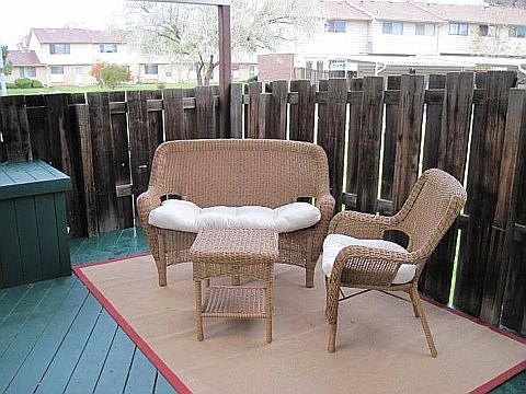 EXCELLENT CONDITION, RANCH STYLE, END UNIT, WITH COVERED PATIO AND GARDEN AREA WITH SHED. 2 BED, 1 BATH, NEW ENERGY EFF. WINDOWS AND WOOD AND TILE FLOORS. WASHER AND DRYER IN UNIT. HOA, COMMUNITY POOL AND PLAYGROUND, 3 CARPORT SPACES. New attic insulation installed 2022.