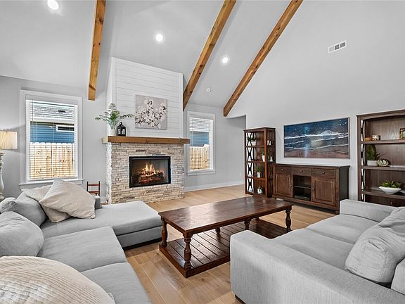 Almost new (1.5 years) without the large deposit that new builds require! This stunning North facing 4-bedrm, 3-bath home offers a perfect blend of comfort & style. The kitchen is a chef’s dream with an oversized island, large walk-in pantry, and modern finishes. A spacious living room boasts vaulted ceilings & a cozy fireplace, creating a warm & inviting atmosphere. Retreat to the luxurious primary suite featuring a spa-like en suite with a beautiful soaking tub. Upstairs, two bedrooms share a convenient Jack-and-Jill bath, while a third bedroom is located downstairs with access to full bath, ideal for guests or multi-generational living. Step outside to the covered patio, complete with a second fireplace and mounted TV, perfect for enjoying cool evenings outdoors. A three-car garage provides ample storage and parking. Located just up the street is a community pool, adding even more value to this exceptional property. This home truly has it all—don’t miss your chance to make it yours!