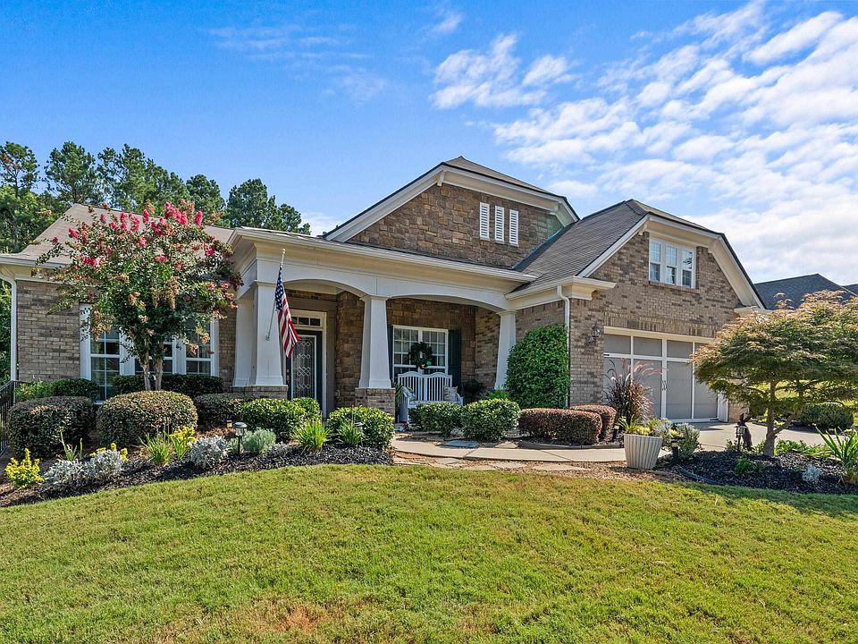One of the best built and well maintained homes in Del Webb! This stunning 2842 sq. ft. home is a true gem. Boasting 3 bedrooms, 3.5 baths, and built in 2009, this meticulously maintained property is a standout in the neighborhood. It features an office, den and a 200 square foot sunroom, ideal for soaking up the natural light. In the heart of the home is a gourmet kitchen offering newly painted cabinets, stainless steel appliances, granite countertops, under cabinet lighting and hardwood floors that run seamlessly throughout. The adjacent den offers a spacious room for entertaining or just relaxing with a wood burning fireplace. The interior showcases a luxurious owner's suite with tray ceiling that features the owner's bathroom complete with double sinks, bathtub, separate shower, and walk-in closet. Each bedroom comes with its own private bath adorned with tile floors. A very private back yard can be enjoyed from the covered porch, open patio extension or from the comfort of the rear sunroom. These additional porches are perfect for entertaining and enjoying the serene surroundings. Completing this impeccable home are modern upgrades including new light fixtures, fans, garage storage, hardwood flooring throughout, newly built outside porch with awning and a patio. Del Webb amenities are right at your fingertips, promising a resort-style living experience. Don't miss the chance to make this exquisite home your own oasis.