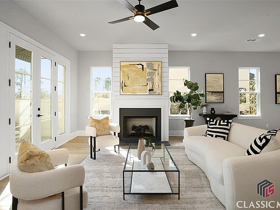 Furnished Model Unit! Open Weekends and by appt during the week! This Stylish Move-In Ready Townhome with Barnett Collection Interior in Watkinsville, GA - Welcome to your new home in the vibrant Wire Park community! This 3-bedroom, 3.5-bath townhome showcases beautifully designed interiors from the Barnett Collection, known for its refined finishes including striking black custom kitchen cabinetry and tile selection, this end unit has tons of natural light that flows in from the additional windows and give you a feeling of comfortable elegance. Enjoy an open-concept floor plan, a private courtyard, and a generous two-car garage—perfect for modern living. Located just minutes from Downtown Watkinsville, Athens, and UGA, you'll have convenient access to local dining, boutique shopping, parks, and year-round entertainment. Whether you're entertaining guests or enjoying a quiet evening at home, this townhome offers the ideal blend of style, space, and location. Don’t miss your chance to own a move-in ready home in one of Oconee County’s most desirable neighborhoods. Reach out to the listing agents today for more information or to schedule a private showing!