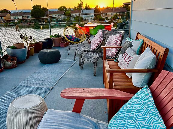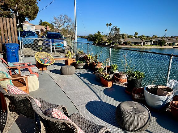 This multi-level, waterfront home is located at the end of a quiet cul-de-sac, aptly situated to view California sunrises and sunsets, and the wonderful bird-life that populates the lagoon. It has plenty of indoor and outdoor living spaces, and is a short stroll or bike ride to the local beach, parks and cafes. The home has 3 bedrooms on the upper floors, plus a separate ground-floor room that could serve as a bedroom or office space. The vast, top-floor bedroom features a loft bed with views of the Bay. It opens onto a large balcony with expansive views that include the San Francisco Bay. The sun-drenched room features big windows, a large wooden desk and an OG barbers chair perfectly placed to watch the sunset. All three bedrooms have built-in closets. The two second-floor bedrooms have wooden dressers. On the ground level there is a 4th room which is currently used as an office space but can easily transform to a 4th bedroom. The kitchen features a brand new double door fridge, 4-burner gas stove and large oven, dishwasher, and large microwave, as well as extensive pantry and storage space under built in wooden benches that make the kitchen the perfect place to cook and socialize. The living/dining area has 180 degree water views. There are two full bathrooms complete with generous built in closet space for extra storage. Called the "Gold Coast," our neighborhood is full of beautiful Victorian and Craftsman architecture, and lined with old, leafy trees. It runs along the city's bay lagoon network, and offers many bird watching opportunities. Please note attached photos are of our furnished home. We can deliver the home mostly empty or mostly furnished, depending on the tenant's needs. There will be a few items of furniture left in the house: a desk, two wooden dressers and a barbers chair. Note: The washer dryer access is negotiable. Pets negotiable. Tenant pays all utilities. Strictly no smoking and no subletting. Pets negotiable. Last month rent due at signing.