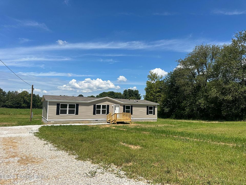 New construction 3 bed 2 bath home on a nice 1 acre lot in Meade County! You will love the split/open foor plan, additional family room, kitchen island, laminate flooring throughout and large primary ensuite with massive walk in closet! High efficiency heat pump services the home and manufacturers warranty transfers to Buyer. FHA and VA loans welcome!
