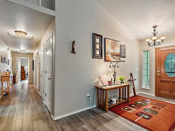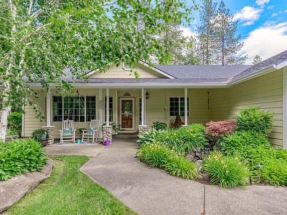 Gorgeous custom home on 2.56 park-like acres with 3 bedrooms, 2 baths in 2,090 sf. The covered front porch with water feature will welcome you home. Updated kitchen with new cabinets, propane cook-top, wall oven, granite counters, farm sink large pantry and slider to the sunroom. Great room with vaulted ceiling, propane free-standing stove, window seat and custom blinds. Master suite with vaulted ceiling, walk-in closet, bath with new cabinets, vessel sink, tile floor and large shower. The grounds are amazing with raised garden beds, fruit trees, berries, pergola, totally fenced, gated property with sprinklers and drip system. An attached 3 car garage; shop is 40x42 with office set-up, cabinets, roll up RV door and heat pumps. Two 10x12 storage/garage, dog kennel and carport. This home and property has been lovingly cared for and may be what you've been looking for. Don't miss the virtual tour.
