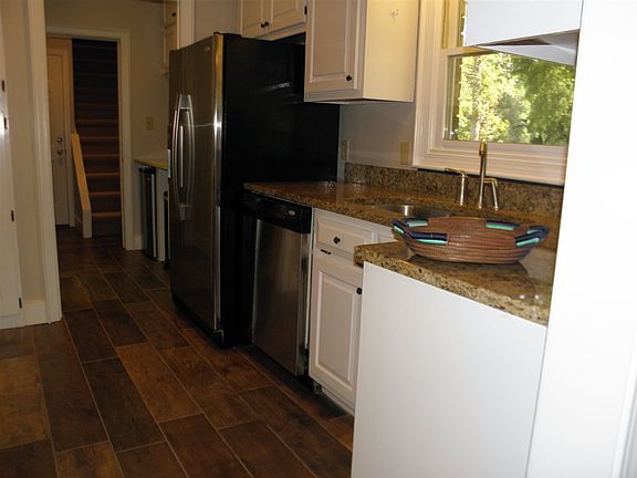 Beautiful 3 bedroom 2 bath home on 1+ acres features an open floor plan with top floor bonus room (includes full bath with stand up shower). Kitchen offers granite counter tops, stainless steel appliances, double oven with smooth top and 5x6 butler's pantry with mini fridge. Kitchen cabinets and built in china cabinets reach to the top of the 9' ceilings! The porcelain tile throughout is amazing, stairs are carpeted. New metal roof in 2016. Fall in love with the covered patio at the back of the house. 1 car attached garage with automatic door opener. Large yard has a storage building with lean-to (perfect to park your boat) and a running creek begging to be fished in, either off the bank or the dock! You are also within walking distance to Fish River where you can put in paddle boards, kayaks, etc.
