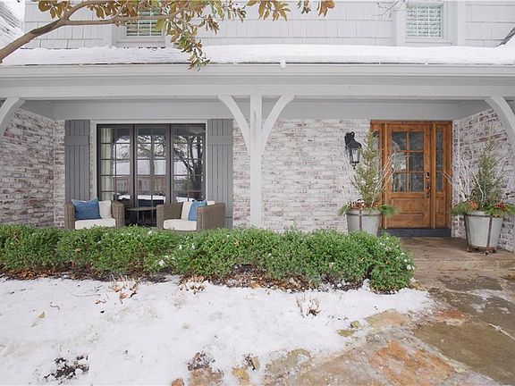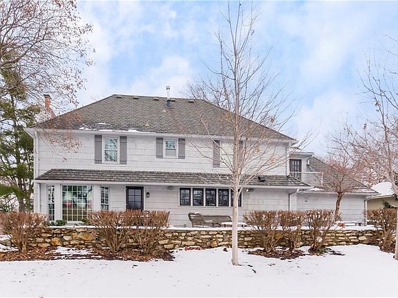 Welcome to this exquisite home nestled in Leawood South, boasting timeless finishes in a prime location on hole 16 of Leawood Country Club. The curb appeal is immediately apparent with a large front porch welcoming you home. The stunning alder wood front door sets the tone for the charm and 'Old Leawood' character that awaits inside. Hardwood floors grace both the main level and the bedrooms upstairs, complemented by the warmth of knotty alder doors and glass door knobs throughout. Just off the foyer is an oversized den adorned with box beams, built-in desk/shelving, and large picture window. French doors lead to the family room with gas fireplace offering a cozy ambiance and captivating views of the golf course. Fall in love with the remodeled chef's kitchen with soapstone counters, crisp white subway tile backsplash, floating shelves, high-end gourmet appliances with gas oven and cooktop, stainless steel hood, and a large built-in refrigerator and freezer. The kitchen also boasts a wet bar area, appliance storage, soft-close drawers and unique custom cabinetry. Adjacent to the kitchen is the formal dining room, creating a seamless flow for entertaining guests. Conveniently located at the back of the kitchen is a mudroom and extra storage space along with a half bath. Continue upstairs to the 4 bedrooms all walk-in closets along with 2 full bathrooms. The master suite is fantastic with plantation shutters, a spa-like bathroom and dream closet! The bathroom has been updated from top to bottom with natural wood tone cabinetry, tile floors/walls and a walk-in shower with 3 shower heads. The closet is a room itself and has french doors opening to a 'Juliet' deck overlooking the course, The lower level is ready for your custom finishes and plumbed for a bathroom. Pool table in LL stays!! Whether you're enjoying the peaceful serenity of the golf course views or entertaining in the tastefully designed living spaces, this home offers a perfect blend of luxury and comfort.