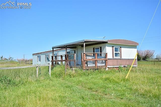 Do not miss this great 5 acre horse property just several blocks from RT 24 and Woodmen Road and has fantastic mountain views. This is a quiet neighborhood where you can build your dream home and just minutes to shopping. There is 2 bed 1 bath trailer that needs work, a 1 car detached garage, and a couple horse barns that all need work. Has a good well and has a septic system. The septic system may need some work. The property is crossed fenced for horses.