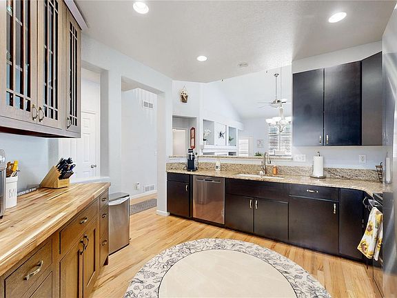 Experience luxury living in this beautifully remodeled Crofton Park townhome! The main floor features stunning hardwood floors and a spacious kitchen with slab granite and butcher block countertops, stainless steel appliances, and ample storage. The versatile main floor primary bedroom includes an en-suite bathroom with an oversized shower and dual vanities. Upgrades like plantation shutters, Hampton Bay fans, and new flooring enhance the home. Enjoy a cozy gas fireplace in the living room, an elegant dining room, and a flexible upstairs loft. The second bedroom has a walk-in closet and is next to a full bath. The finished basement offers versatile space, while the third bedroom rivals a primary suite. A private deck is perfect for relaxation or entertaining. With easy access to top-rated restaurants, excellent schools, and commuting routes to Denver and Boulder, this townhome offers the best of Crofton Park living!