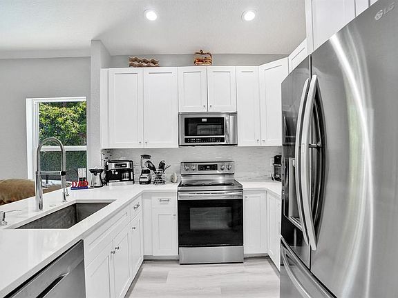 TOTALLY RENOVATED 3 BED/2 BATH POOL HOME Located on quiet private cul-de-sac in desirable gated community of Vizcaya. IMPACT WINDOWS!!! HEATED POOL RECENTLY RESURFACED with Hawaiian Blue Diamond Bright and LED LIGHT! BRAND NEW FLOORS, UPDATED BATHROOMS AND KITCHEN with NEW HIGH END STAINLESS STEEL APPLIANCES, WHITE SHAKER CABINETS, WHITE QUARTZ COUNTERTOPS WITH MODERN GLASS BACKSPLASH, FRESHLY PAINTED INTERIOR, NEWER AC UNIT, NEW WATER FILTER SYSTEM, NEW MODERN HARDWARE, NEW SPRINKLERS, VAULTED CEILINGS with NEW LED LIGHTING THROUGHOUT, NEW CUSTOM FLOOR IN GARAGE. LOW HOA includes CABLE, LANDSCAPING OF FRONT/BACK YARDS, ALARM MONITORING & Amenities: community pool, hot tub, gym, tennis courts! Great location! Good Schools, easy access to highway.