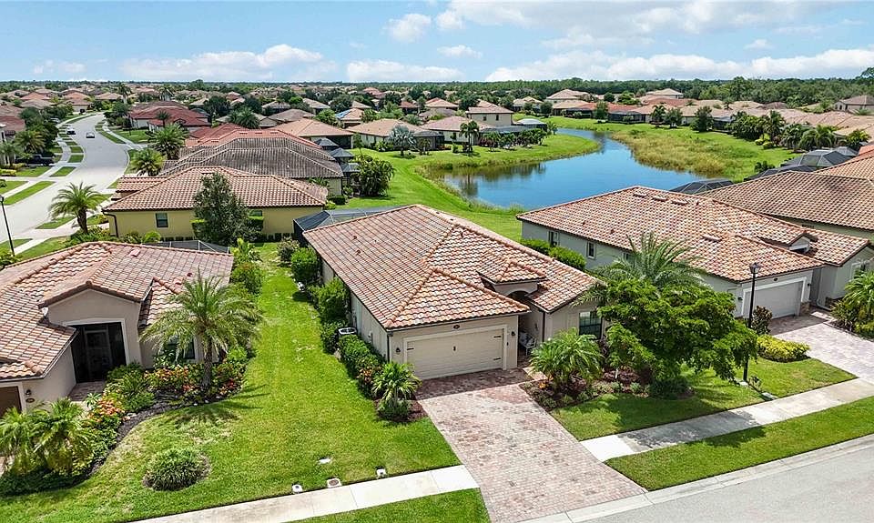 MOST COMPETITIVE PRICE IN WELLEN PARK! Dive into the lifestyle you’ve been dreaming of AND live like you're on vacation every day! Built in 2016, this 4-bedroom, 3-bath Trevi floor plan offers 2,025 square feet of thoughtfully designed living space, featuring a CUSTOM HEATED SALT WATER POOL/SPA with breathtaking lake and sunset views—all nestled within the resort-style, gated community of Gran Paradiso. NOT IN A FLOOD ZONE. With a practical split floor plan, this home offers a warm and inviting layout ideal for everyday living and entertaining. Three of the bedrooms are located at the front of the home, including a true guest suite with its own private ensuite bath, perfect for visitors or multigenerational living. The other two bedrooms share a nearby full bath off the hall. The spacious primary suite is tucked at the back of the home for added privacy and features pool and lake views, two large walk-in closets, and an ensuite bath with a soaking tub, walk-in shower, and dual vanities. You'll also find porcelain wood-like plank tile flooring and crown molding in the main living areas. The kitchen is the heart of the home, offering a generous island with bar seating, granite countertops, stainless steel LG appliances, a walk-in pantry, and a whole-house water filtration system—providing clean, high-quality water throughout. Upgraded outdoor living is a must in Florida, so step outside to your private screened-in lanai with a sparkling CUSTOM HEATED SALT WATER POOL AND SPA, where you can enjoy serene lake views and breathtaking sunsets year-round. Located on a quiet street within a gated community, this home is ideal for full-time residents or seasonal enjoyment. Gran Paradiso offers world-class amenities designed to elevate your everyday lifestyle. Whether you're enjoying a refreshing swim or a family movie night by the massive resort-style pool and spa, staying active in the state-of-the-art fitness center, playing a game of tennis or pickleball or gathering in the elegant clubhouse, there's something for everyone. The neighborhood is known for its friendly atmosphere, lush landscaping, and scenic sidewalks that wind through the community and around serene lakes—perfect for walking, jogging, or simply taking in the view. The HOA includes cable TV, lawn maintenance, and access to all community amenities—making luxury living effortless. All of this is just minutes from vibrant Downtown Wellen Park, where you can enjoy dining, shopping, and weekly events, and less than 10 miles from the pristine Gulf Coast beaches. Schedule your private showing today and discover why Gran Paradiso is one of Venice’s premier lifestyle communities.
