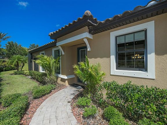 Welcome home to Esplanade Golf & Country Club, a maintenance-free resort style community in the heart of Lakewood Ranch offering an abundance of amenities for a home-owner to relax and enjoy without having to leave their neighborhood. This never lived in former model home is being sold turnkey furnished for your convenience. You will be wowed by the attention to detail in this beautiful 2 bedroom, 2 bath, den/office home. This home has over $93K in designer upgrades including, 42" kitchen cabinets, stainless appliances, quartz counter tops throuighout the home, wood look laminate floors, tray ceilings with crown molding, extended garage, extended lanai, 8' interior doors, surround sound, and home technology package. This is a FULL GOLF MEMBERSHIP maintenance free home offering 18-hole championship golf course. Enjoy the Bahama bar, the new culinary center with fine dining and a bar, heated lagoon style pool, resistance pool, & bocce ball courts, fire pit, dining, tennis and pickleball. There are numerous classes and clubs to join. Esplanade is just minutes from I-75, shopping, dining, entertainment and the UTC Mall & the best beaches around. Enjoy the resort style living and vacation every day.