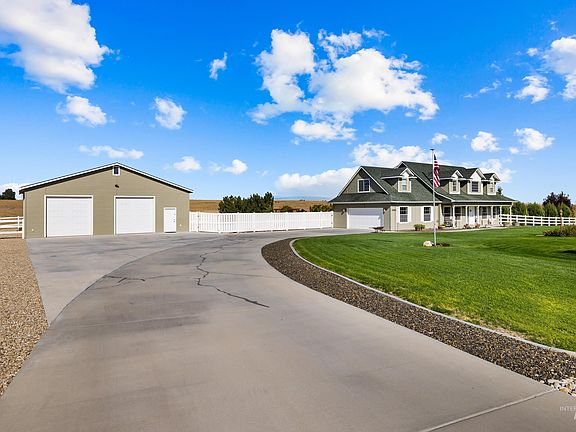 Impeccably maintained South Nampa home in the desired Foothill Ranch subdivision. Endless views while also being close to amenities. Bring your horses or chickens. The large covered patio makes for outdoor entertaining with additional outdoor features such as waterfall, fire pit and horseshoe pits. Quartz countertops, center island, two pantries, as well as a gas range. Home has two fireplaces. A gas fireplace in the formal dining room as well as a wood burning stove which heats the majority of the house in the main living room. Upstairs you will find the master bedroom with a walk in closet, 3 additional bedrooms and a bonus area with a multitude of uses. The property features a separate 30 X 40 shop with 10 X 10 roll up doors for all of your hobbies. Additional storage shed for all of your lawn care supplies. Room for a garden, RV or trailer. A water softener has been installed and the property is fully fenced and ready for you and your large or small animals to move in.