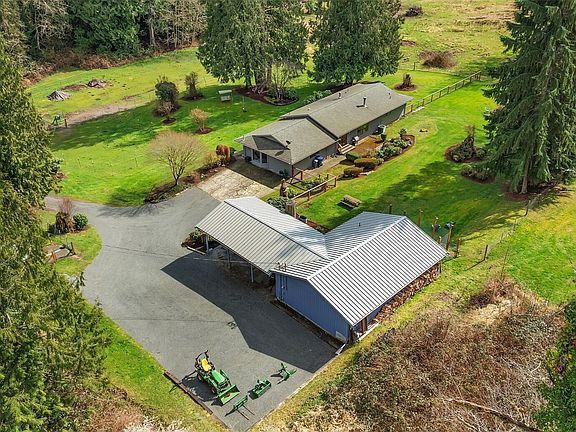 Welcome to this exceptional equestrian property! This 2.3-acre fully fenced estate offers a 2,136 sq ft rambler with ample space for all your needs. The open-concept kitchen and dining area flow into a spacious living room with easy access to the fully fenced backyard. A versatile flex space with a separate entrance adds to the home’s functionality. The primary suite features an en suite bath and large closet space, while two additional bedrooms and a utility room complete the home. Outside space abounds with endless opportunities. Enjoy a 1-bay horse stall with power and water for your convenience, attached paddock and pasture, chicken and goat pens and detached shop with tack room & half bath, plus plenty of parking. No HOA