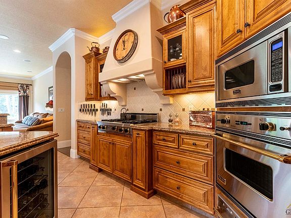 Exquisite 4,115 sf home in prestigious gated NW community of Trinity w/ tons of upgrades (see attached list). This Froelich-built beauty is a former model home and it shows. The owners recently installed 48 solar panels which are owned. There is a beautiful side courtyard w/ a pool, heated spa, waterfalls and lush landscaping that was just refreshed by Monji. The home features 5 bedrooms (1 can be used as an office), 3.5 baths (which includes an attached 1 bedroom, 1 bath casita), a formal dining room (w/ amazing banana leaf wallpaper), living room (w/ huge curved windows overlooking the courtyard), family room (w/ fireplace and built-in entertainment center) and a gourmet kitchen (w/ Viking appliances - see list of upgrades). There are lovely artistic touches throughout the home such as faux marble paint, unique painted ceiling scenes and coverings, wallpaper and a pergola w/ Corinthian columns. The backyard boasts a koi pond, artificial turf yard, pergola and spacious covered patio.