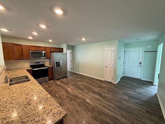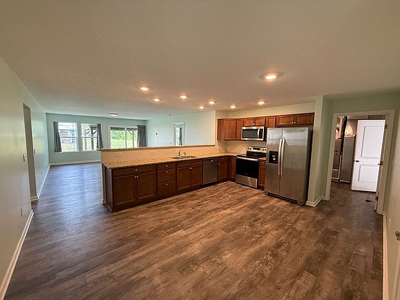 The eat-in kitchen features stainless steel appliances, breakfast bar, granite countertops, and a large pantry for all your cooking needs. Newer LVP allows the kitchen to flow seamlessly into the living room. The added den provides an additional flex space, and the accent wall provides a touch of elegance. The split bedroom floorplan provides privacy and comfort for all residents. Step outside to the back patio and relax in the fresh air. With modern upgrades throughout, this house is a great place to call home. Listed price contingent upon 2 year lease, 1 year lease subject to price increase.