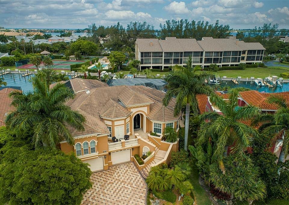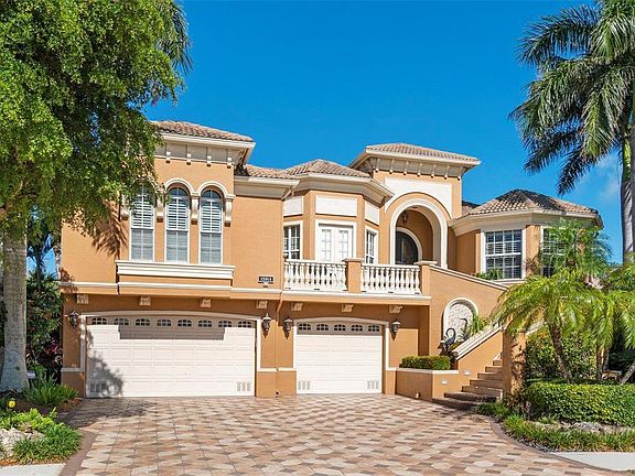Located in the gated community of Harbour Landings Estates and approximately one mile from the nationally recognized beaches of Anna Maria Island, this almost 5,000 sq ft home offers 3 bedrooms plus an office with quality built ins and a large bonus room featuring a built in bar. This home has all you could ask for including an 80 ft dock which happens to be the only deeded home dock space in the community, deep water dockage, plus additional boat parking with a 10,000 lb lift right behind the house. The additional bonus space should not be missed and is a must see with tremendous storage space. Travel the saltwater canal a very short distance to Palma Sola Bay and on to the Gulf of Mexico. This Lee Wetherington custom built home is situated on a premium lot and is all block construction with impact windows and sliders. The garage can accommodate 5 cars plus with more than ample space for your many other toys of the active lifestyle. The garage floor is newly coated with a polyaspartic coating which is six times stronger than epoxy. More features include 14 ft ceilings. 8 inch baseboards, quality millwork. This meticulously maintained home features many luxury appointments including elevator, 2 gas fireplaces, whole house Sonos sound system, central vacuum, and gorgeous chef's kitchen with gas cook top, microwave/convection/conventional/warming wall ovens. Entertaining is easy with the corner sliders that pocket to each side to allow easy flow from the kitchen/family room to the large covered outdoor kitchen and lanai area. The caged pool & spa have a paver deck, sun shelf and 3 side fountains and waterfall. All of the living space is on one floor and offers all the luxury and quality a discerning Buyer is looking for today.