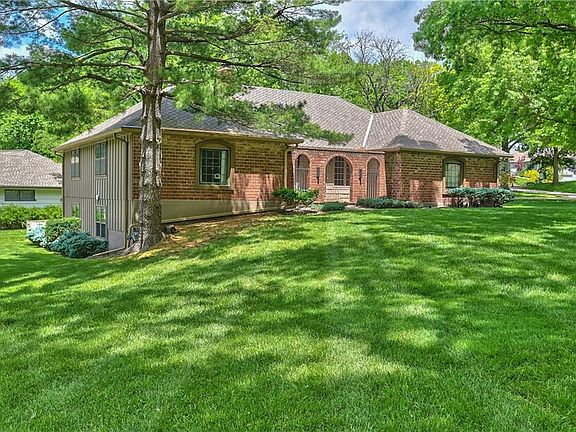 The main level offers seamless one-floor living with three nicely sized bedrooms and two full bathrooms. The kitchen features a new stainless-steel dishwasher (2023), dual ovens, a pantry, built-in cooktop, and cleverly integrated laundry closet. The adjacent dining room flows naturally into the kitchen, creating perfect sight lines for both daily life and special occasions. Step down into the walk-out lower level and discover an entertainer's paradise. This expansive space features a wet bar with buffet counter—ideal for hosting memorable gatherings. A dedicated workshop provides creative space, while abundant windows flood the area with natural light. Multiple storage areas keep everything organized, and there's generous room to add two conforming bedrooms, transforming this into a reverse 1.5-story layout. Positioned on a beautiful corner lot, this home offers both privacy and accessibility. You're minutes from State Line, top-rated Blue Valley schools, major highways, and premier dining and shopping destinations.