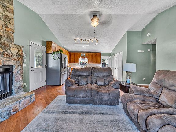 Move in ready and 10 minutes from Philpot lake and El Rio! This charming home has an open concept, featuring a floor to ceiling rock gas fireplace, hardwood floors with nice paint colors throughout. In the kitchen you will find a double oven, eat in kitchen and a door that leads you to a freshly painted deck with privacy and natural landscaping. The bedrooms are a good size upstairs with an updated bathroom and the laundry is located on the entry level. Downstairs you will be surprised with additional living space with a nice, large family room with LVP and neutral paint, no need to go upstairs on movie night as there is half bath off the family room. The other half of the basement provides plenty of storage with a large door to bring your mower inside. The driveway circles the house, there is plenty of room for a camper, RV, boat or any other recreational toys. This home is a 2 bedroom but has a 3 bedroom septic offers opportunity to add on. The owners have laid fresh mulch, pumped the septic, added gravel to the driveway and filled the owned propane tank for the new owners. This home has been well cared for and will make a nice starter home or someone who wants to downsize.