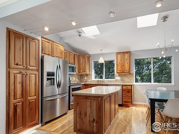 Welcome to your own private and bright oasis in the heart of Broomfield. Lovingly updated and maintained, this home is ready for you to move right in. Upon entering, you'll be greeted with vaulted ceilings and an open floor plan that seamlessly connects a generous kitchen to a well-lit living area. The exceptionally spacious kitchen boasts newer cabinets with pull-out drawers and countertops, a rare find in this price point. Enjoy views of your tree-lined backyard from your main level living space. Upstairs, two sizable bedrooms offer picturesque views of the lush rear trees and the quiet, residential private street in front. The primary bedroom provides ample closet space and the added convenience of an in-bedroom sink. Downstairs, you'll find a second living area off the kitchen, complete with the bonus of a fully working wood burning fireplace. From here, walk out to a spacious back patio that's perfect for entertaining or enjoying a peaceful evening. Continue down to the basement where there is another bedroom and bathroom, affording a self-contained living space. The walkout basement ensures personal entry, lending privacy and separation to this area. Enjoy ample lower level storage space. Outside, enjoy your fully fenced backyard lined with mature, tall trees that provide tranquil privacy. This is a great space for relaxing or entertaining. A backyard shed as well as the attached two-car garage afford plenty of storage. The sought-after Brandywine neighborhood offers convenient access to Broomfield Commons and The Fields open spaces, golf clubs, dog parks, the Broomfield reservoir, and the Paula Derda recreation center. This is your opportunity to move right into a meticulously maintained gem with a desirable floor plan, right in the heart of Broomfield!