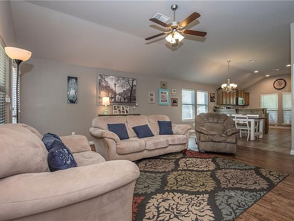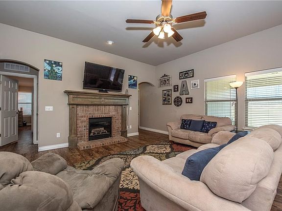 Great open floor plan with 3 bedrooms, 2 baths, 2 car garage. This home is fitted with all the cozy features that include a fireplace to snuggle with your family while sipping on hot cocoa, ceiling fans, covered front porch to enjoy your morning coffee rain or shine, and let's not forget the "STORM shelter" to protect your family and fur babies during Oklahoma's mesmerizing storm season. Large kitchen, large laundry room, high ceilings, study center, and a nice little are to take off your shoes and backpacks. This house is looking for your family to call it HOME! Call today for your private showing or be looking for postings of up and coming future open houses! Energy Efficient Home!