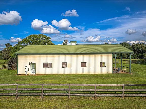 Location Location Location! This robustly equipped holding sits equidistant from the HITS show grounds and WEC expo center (13 and 14 miles respectively). Boasting an acreage just below 16, charm and functionality meet potential in the heart of central Florida's Horse Country. The flexibility of this turnkey farm features five lush irrigated paddocks situated on four legally subdivided parcels allowing for the development of a family compound or various build combinations immediately or down the line. The acreage at the front of the property is partially wooded providing picturesque privacy from the road, perfect for a new home build or development of a riding arena. The well-appointed center aisle barn is designed for serious equestrian use. It includes eight matted stalls with electric, a wash rack and tack area, a half bath, and a large open hay storage loft with potential for the creation of living space. The barn runs on its own electric and well, offers 220 power, and has plentiful surrounding drive space for easy loading and unloading / RV and trailer access. The three bedroom, two bathroom home features a brand new roof (Aug 2025), two-car garage, a screened-in back patio, and a relaxing front porch with views of the entire property. Inside the home, you'll find a warm and inviting kitchen with stainless steel appliances, breakfast bar, and separate dining area leading to the large living room. The master suite's large eastern and northern exposures provide beautiful natural light, and has walk-in closet space and a large en-suite bath. The home has a split floor plan and newly installed luxury vinyl plank flooring throughout. With its prime location, and versatile layout, this property is a rare find in Reddick's thriving equestrian community. Schedule a private tour and discover this gem