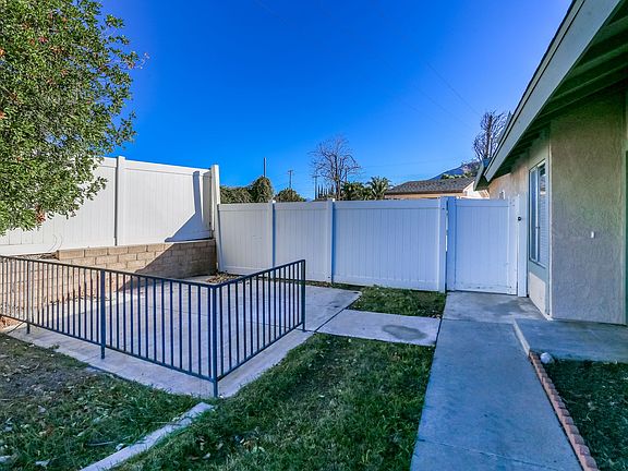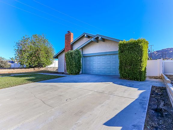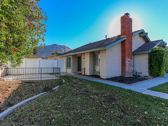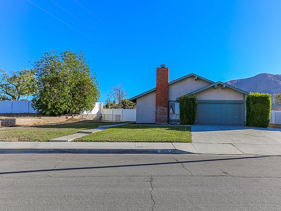 Lovely 4 bedroom, 2 bathroom, single story home with peek mountain views in the community of Grand Terrace! Enjoy an open floor plan with high ceilings, an inviting fireplace, hardwood, and tile flooring. The open kitchen offers white cabinetry, white appliances, and views to the back yard. The large bedrooms feature hardwood flooring and spacious closets. Additional property highlights include an open side patio, a large back yard with a covered patio, a 2 car garage, and no HOA!