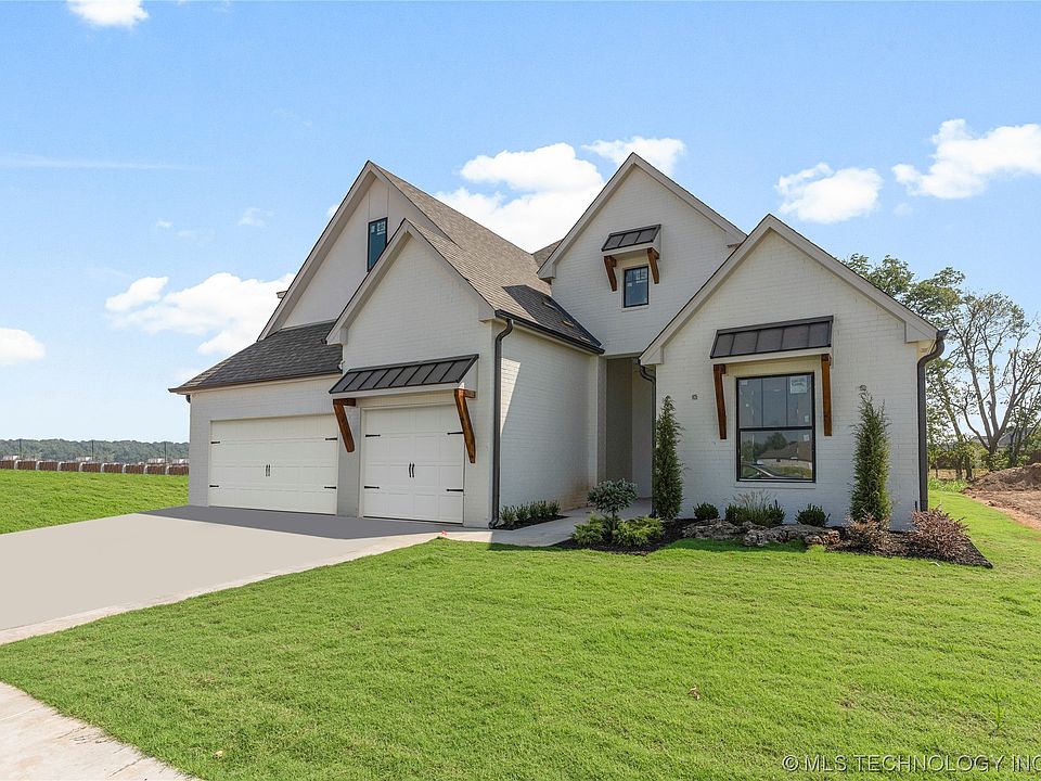 Greenbelt lot in the gated Estates at the River of Bixby is hard to beat! New construction by Summers Group with very custom design and details. Arched iron front door, cabinets to the ceiling, oak floors, trim accents done right, master suite connects to laundry, spray foam insulation and one year builder warranty. Two beds down, office space down faces Greenbelt view, two beds and game room up. 45 days to completion . Ask about closing costs incentives