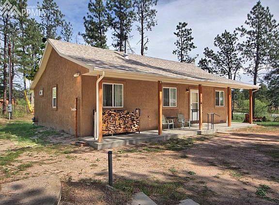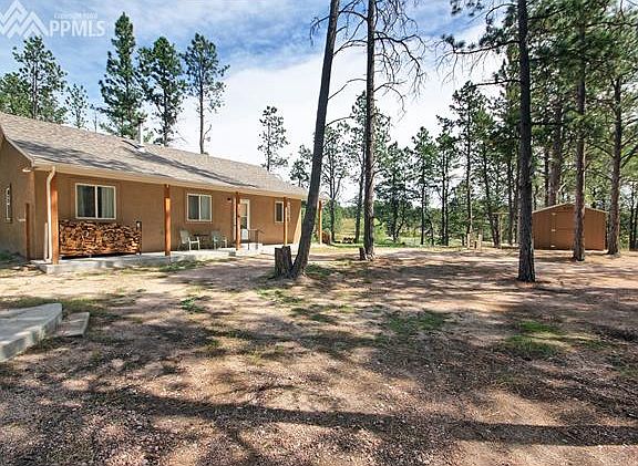 Truly an amazing lot of land in the forest, yet so close to the regional park, shopping, the high school, & the Powers corridor * Completely new home built in 2013 * Open ranch floor plan with extensive hardwood flooring * Living room with wood burning stove * Kitchen offers a skylight, kitchen cabinet pantry, breakfast bar, granite counters, and tile backsplash * Master bedroom with adjoining 3/4 bath with tile, large shower, and granite counter * Two additional bedrooms and full bath with tile * Large covered front porch Large, 27x27, 2-car detached garage on slab with storage shelves, work benches & compressor hookups * Carport * Storage Shed * Additional features include: recessed lighting, pendant lights, vaulted ceilings, linen closet, bullnose corners, 6-panel doors, and deep crawl space underneath the entire house * Boiler/Hot Water Heat, on-demand * Well was tested and found potable after Black Forest fires.