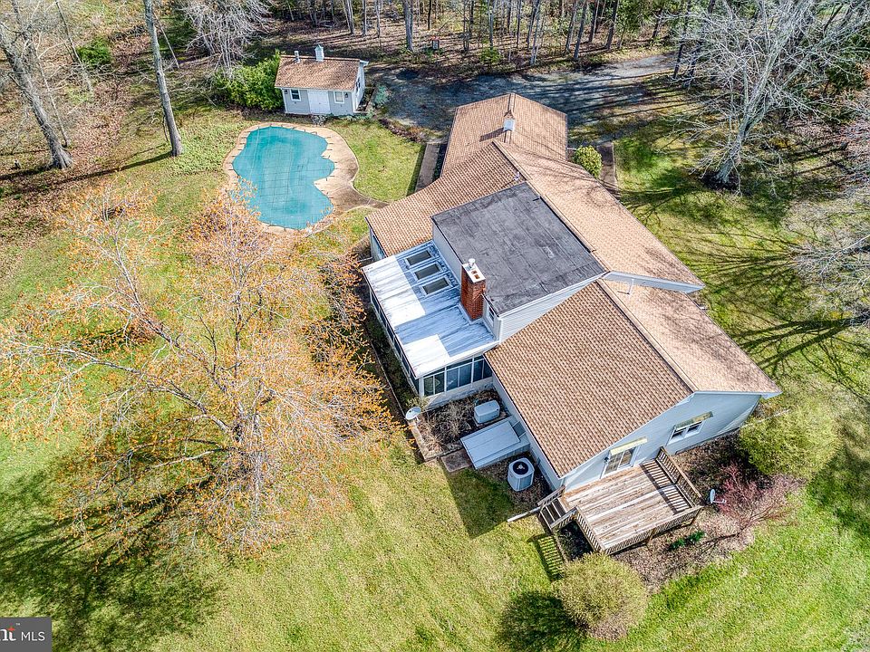 Lovely custom built home on almost 5 acres with pool and 2 extra outbuildings. Lovely custom kitchen has been updated to granite and space for table. 2 car garage with walk in to large utility room with half bath. Kitchen and breakfast area leads to family room. Family room has access to the 4 season room with glass surround. Dining room and formal living room. Main level primary bedroom. 3 bedrooms upstairs. Fireplace in family room. Unfinished basement perfect for workshop or expansion. Pool being sold as is. It was not opened last year but was working on 2022. Pool house with all equipment. 2 large outbuildings. Quiet and wild life abound in this picturesque setting. Call today for appointment