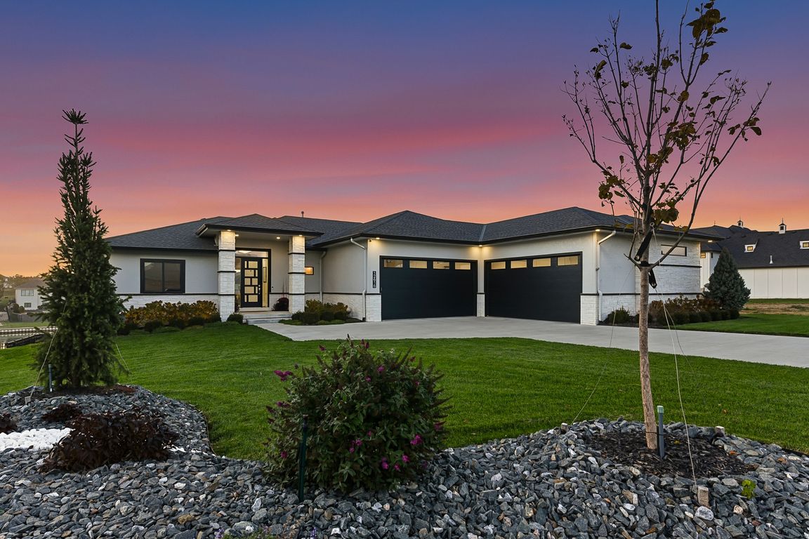 Experience luxury lakefront living in this exceptional 5BR, 5BA, 7-Car walkout ranch built in 2021 on the tranquil shores of Bennington Lake. Designed for entertaining, this home boasts over $250K in outdoor upgrades creating a true backyard oasis, including a custom, saltwater fiberglass heated pool complete w/ waterfalls, lighting, fire pit ...