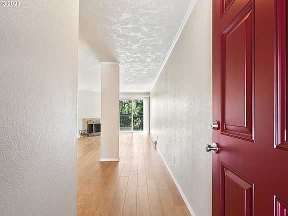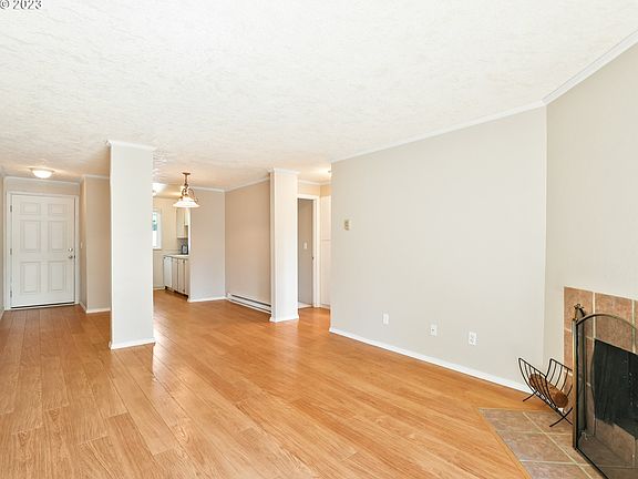 Welcome to your serene retreat in Cedar Mill! This upper-level condo is a hidden gem, nestled within a picturesque property that features a tranquil pond, winding walking trails, tennis court, and outdoor pool. Condo has undergone an exterior transformation in 2023 that adds a vibrant touch to the surroundings. Look for new siding, eye-catching paint, doors & windows. As you enter, you'll be greeted by the cozy warmth of a wood-burning fireplace in the living room, perfect for chilly evenings. Bedrooms offer electric heat. Engineered maple wood floors grace the main living area, lending an elegant touch, while carpeting in the bedrooms adds comfort and coziness. Slider door in the living room opens to a private deck. Imagine sipping your morning coffee while enjoying the peaceful view. There's a handy storage closet on the deck for all your outdoor essentials. Kitchen comes complete with dishwasher, refrigerator, and electric range. The bathroom features a full tub/shower, ensuring convenience and comfort.Laundry facilities are just steps away from your unit. Location couldn't be better! This condo is strategically located just minutes away from multiple dining options, shopping at Timberland Town Center, and easy access to Sunset Transit Center and Highway 26. No need to worry about parking, one assigned parking space directly in front of the building ensures you always have a place to park. Don't miss out on the opportunity to make this peaceful retreat in Cedar Mill your own. Experience the tranquility, amenities, and convenience that this condo has to offer and embrace the serene lifestyle you've been dreaming of!