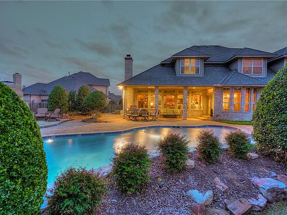 Lovely custom built home on a quiet culdesac and ideal location close to hospitals, highways and shopping. Wonderful floor plan with updated Grand Manor roof, H&A units and hot water tanks. The formal living and dining areas are just off a dramatic two story entry with curved staircase. Family room has a wood burning FP and walls of windows that overlook a gorgeous inground pool w/waterfall. The outdoor living space is ideal with a covered patio and an additional open living space with wood burning fireplace. The downstairs master is oversized with a nice size closet and elegant master bath. Upstairs offers 3 kingsize bedrooms each with bath access plus an additional living space ideal for game room or exercise room. Located in gated Cobblestone Park 2. This home has been beautifully maintained inside and out. Putnam City NORTH schools