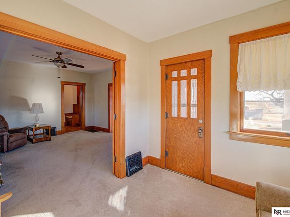 Country Charmer Awaits Buyer! A must see 4-bedroom home located on a large, level 3-acre lot perched atop Cass County in Weeping Water Nebraska. You'll enjoy scenic hilltop views from the spacious covered front porch. Tall interior ceilings throughout, oak floors, woodwork, detailed trim, a sunroom, lots of built in storage, large walk-in closets & a pantry. The walkup basement provides additional space, and the detached garage is conveniently located for easy access. Don't miss out on this one of a kind, hard to find acreage with outbuildings.
