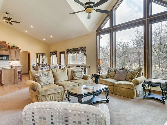This one of a kind, custom built home with an oversized 4 car garage, on over a 1/2 acre of ultimate privacy is waiting for you! As you drive down the cul-de-sac to this amazing home you will not believe your eyes. The home welcomes you inside on the travertine tiled foyer that opens into the most amazing wall of windows you have seen in a home in Kansas. The living room boasts a grand fireplace that leads all the way up to the 17' ceilings, it's drop dead gorgeous! Truly open floor plan with a formal dining room and this kitchen...wow...bamboo wood flooring, granite countertops, tiled backsplash, staggered cabinets, walk in pantry and an eating bar and breakfast nook that overlooks that so private, tree lined lot! Split bedroom floor plan with the master boasting more views of that backyard, ensuite bath with separate vanities, a shower made for 2, jetted tub and the huge, amazing walk in closet! The other bedroom is generously sized as well with another full bathroom. There is even access to the 2nd garage down the hallway, perfect for guests! Moving to the basement, via the mid level walk out, you will want to kick off your shoes and relax while watching the big game. Another fireplace with stunning custom built ins, again, there is nothing cookie cutter here! You'll find one more bedroom and another bath, but wait, there's more, a perfect office area with loads of light from the view out windows, the safe room is accessible through the basement shop. There is even a wet bar to make entertaining that much easier! Now to the best part...outside...covered Trex deck is the perfect place for morning coffee while listening to the sound of the birds and watching for wildlife. As you walk around the lot there is an area set up with a firepit with charming straw bales for seating, all tucked away in a cozy spot you will enjoy telling stories and making s'mores! I could go on and on...exterior has just been painted, custom draperies, main floor laundry in separate room, loads of storage everywhere and the HVAC is much more sophisticated than most homes. It has a two-stage heat pump and a conventional gas furnace. Get ready to fall in love with this dream house!