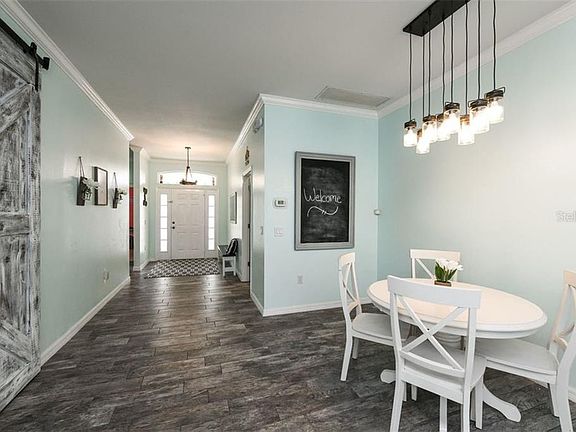 - Ceiling Fans(s), Master Bedroom Downstairs, Split Bedroom, Crown Molding, Walk-In Closet(s), Window Treatments, Kitchen/Family Room Combo