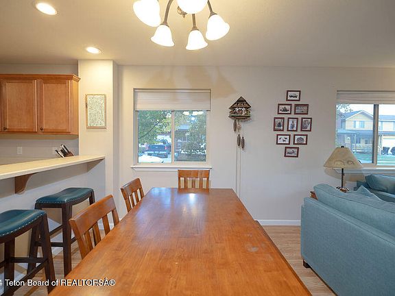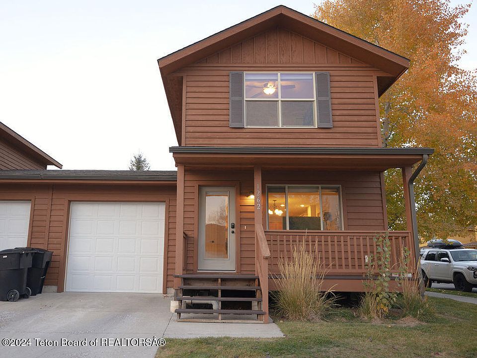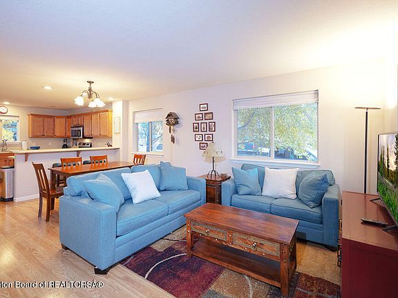 Located in the heart of Jackson, WY, this 2-bedroom, 1,120 sq ft mountain-town townhome sits on a corner lot in Cottonwood Flats. Located in a peaceful neighborhood offering sunset views over the mountains and easy access to hiking trails, schools, and all in-town conveniences. The open-plan living and kitchen area provide comfortable living space, while the newly finished front deck is perfect for unwinding. Features include a 1-car garage, two bedrooms and driveway, off street parking. With HOA-maintained exteriors this furnished property is ideal as a personal residence or income-generating rental. Explore nearby Snow King Mountain and Jackson Hole resorts - your mountain lifestyle awaits!