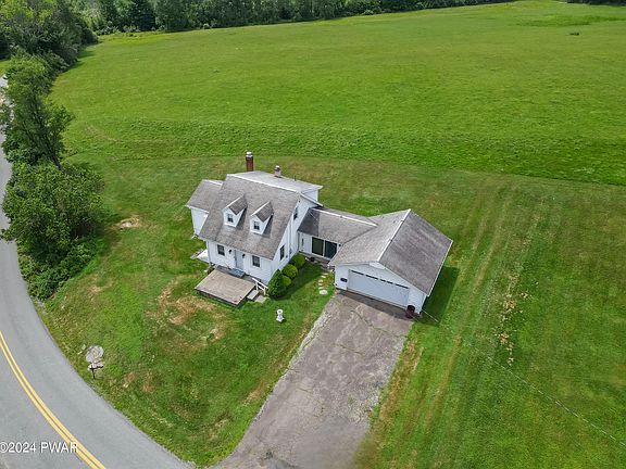Set on 13.52 ACRES, this beautiful 2 bedroom, 1 bath country farmhouse is located close to Prompton Lake & zoned for farm use or a residence. There is plenty of space to add onto the home as well. The main level features a living room with brick wood burning fireplace, built-in cabinets & a picture window overlooking the acreage. The dining room features hardwood floors and leads into the kitchen and a breezeway with sliding doors that open to the backyard. Upstairs, you'll find two bedrooms w/beautiful hardwood floors and a full bathroom. The unfinished basement offers storage space, a slate floor & a utility area. Newer windows are located throughout the house. 2 car garage. Zoned for farm use and located in Western Wayne School District. Low taxes & no HOA! Acreage is Clean & Green. Furniture included. NOTE: recent subdivision, some maps have not been updated. Please refer to the map in the photos.