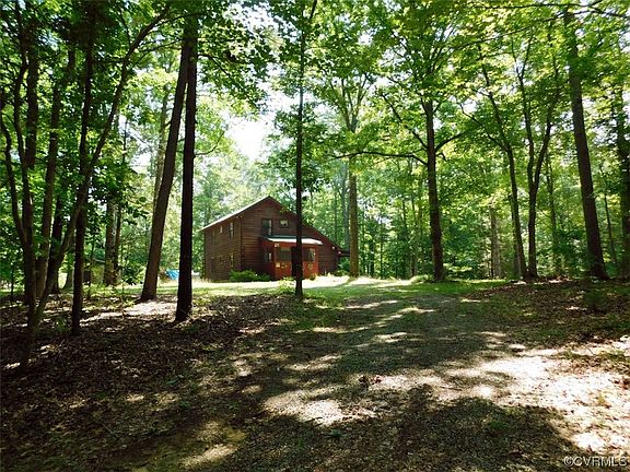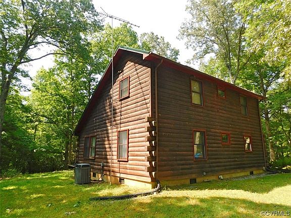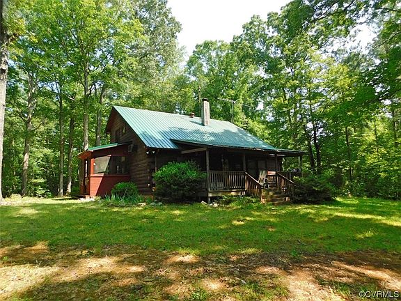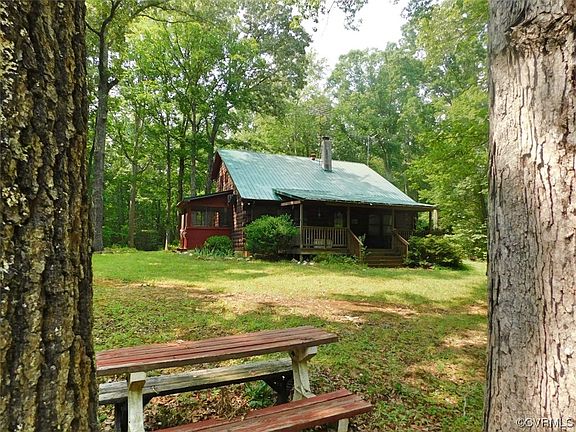 Ever dreamed of owning your own log cabin, hidden back in gorgeous mature hardwoods--that have 4-wheel and walking trails with beautiful ferns next to a clear water creek. plus your own river frontage? You have found it here! The property includes 3 deer stands, a tool house, lawn mower shed, a sheltered small arms firing range, a roof under which to park a camper and a dump station for it. The cabin has a new metal roof, central air and heat for year-round comfort, plus a Fisher woodstove with river stone chimney for authenticity and cooking a good pot of chili. The front porch, with its own grill niche, is large enough for a party, or just a friends and family dinner while enjoying views of the trees, nature and wildlife. Owner added a closet to the office and used it as a 1st floor bedroom. All furniture and furnishings seen in the photos are included--even the TV, vacuum, kitchen ware, linens and lots of split firewood! Bring your toys, clothes and food and move right in! Stress will simply melt away in this back-to-nature setting! The wildlife love it here and you will too! Bonus--some of the lowest tax rates anywhere around are in Lunenburg County!