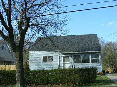 Exterior Features:A cape cod with vinyl siding and an asphalt shingle roof that is in good condition. There is a concrete driveway for off street parking, but no garage. There is a big back porch from the basement that is under roof on the back of the house............. Econohomes purchased a title policy on this property.Interior Features:The interior is in overall good conditon. The kitchen is fully intact and includes a refrigerator, and a range. The vinyl flooring is in good condition. The bathroom is intact and has vinyl flooring that is in good condition. All three bedrooms have carpet that is in good condition. The living room has hardwood floors. The full basement is partically finished. Mechanicals are intact and include a forced air furnace, hot water heater and plumbing.