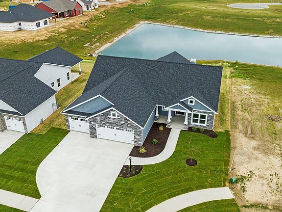 OPEN EVERY SUNDAY. This SAWYER III Kiracofe home is complete and ready to start showings! Located in one of Huntertown's newest subdivisions, Rolling Oaks, this open concept ranch on a slab has a spacious floor plan and high end amenities throughout. This three bedrooms, 2.5 bath features a large, eat-in kitchen with an island and quartz countertops, a covered porch and extended patio, cathedral ceilings, a huge master closet that connects to the laundry room, a 3-car garage and a premiere lot with a pond view! All Kiracofe Homes include irrigation and sod in the front yard, grade and seed in the back/side yard (irrigation in the back and sides available as an up charge), a dedicated gas line for your outdoor grill, loads of storage and all kitchen appliances including the refrigerator. Don't miss a chance to get in on the ground floor of this new construction home. Rolling Oaks is conveniently located near I69, shopping, dining, Parkview North and Dupont Hospital.