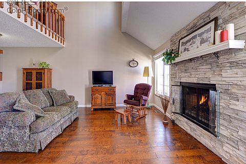 Beautiful lake view Hunters Glen townhome! Steps from walking path that circles the lake. Townhome is minutes from anything you would need for everyday. Part of Adams 12 school district. Home features vaulted ceilings, new windows, west-facing, office loft, hardwood flooring, new automatic awning over patio, gas log fireplace, formal dining room, oversized 2-car garage, air and heating (maintained annually). HOA just installed new siding and roofing in the complex. Well maintained home.