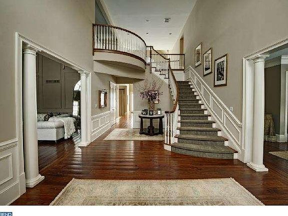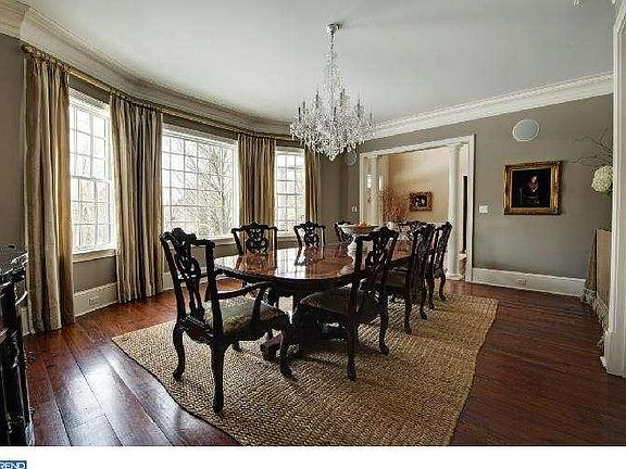 Custom estate home in Upper Makefield on over 19 gorgeous acres. There are designer finishes and touches throughout: grand entry way, dramatic two story formal living room, exquisite molding and millwork, gourmet chef’s kitchen with the best of every appliance, morning room with wall of windows, 1st floor main suite with luxurious bath and finished 3rd floor entertainment space complete with a home theater and game area. The family room with wet bar is open to the bright two story breakfast area and kitchen. The second floor offers four ensuite bedrooms with custom built-ins, a homework nook, and large custom laundry room with double machines and a island. Other highlights include: radiant heat on first floor, Grande Manor roof, second laundry room, and three fireplaces. The surrounding landscape is another superb addition to this secluded estate.