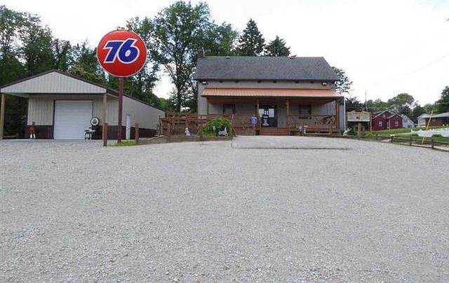 Location! Location! Location!, Situated just off Rt. 119, this 2450 sf+ renovation has all the major components updated. Main floor is open floor plan with office, storage loft and accessible bathroom. Original hardwood plank flooring, stain glass windows and 3 original chandeliers. There is a metal pole building, 57 1/2 x24 with concrete floor. The .64 acre is fenced with a large parking area. This building has the history from the past with the updates of modern day. Lease option available.