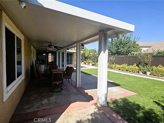 Your new home sits tucked away in the heart of the ever-popular Sundance Community. Nestled against the breathtaking backdrop of the San Gorgonio Mountains, Sundance offers beautifully designed homes on tree lined streets and features lush community parks and efficient location near several schools. This 4-bedroom 2 bath immaculately maintained home, offers an open floor plan with high ceilings that creates a light airy feel throughout. The Kitchen is open to the family room and features white cabinets, quartz counter tops and sleek stainless-steel appliances. Off the kitchen is the stunning highlight of a large Arizona sunroom, perfect for relaxing, entertaining, or soaking up the natural warmth of this peaceful haven. Outside you have a massive 2-sided patio with an added gem of an outdoor kitchen area for all you alfresco cooking fanatics. New gorgeous green grass rounds out this perfect entertainment oasis. The home interior has been newly painted all white, providing a pristine neutral backdrop-a true blank canvas for your personal style and design vision. At the front of the home you will find 1 bedroom, separated from the other bedrooms, perfect for a guest room or den. Built in desks greet you in the office area as you move through the house to an open concept area that could be used for a living room, a dining room or a combo of both. Down the hall you will discover a luxurious remodeled spa-like bathroom presenting with Fibo white marble type walls and quartz countertops, all creating a sleek modern design. Continuing down the West Hall is the good-sized laundry room and another private bedroom tucked away by itself offering a quiet retreat. Back off the main hall you will find another spacious bedroom and the ample sized master bedroom. The master has the grandeur of tall ceilings and sunlight pours into the room through two generous windows, creating a warm and inviting retreat. The Master Bathroom has also been meticulously remodeled, showcasing Fibo white marble type walls, quartz counter tops and porcelain tile flooring, emphasizing a timeless yet contemporary style. PAID OFF SOLAR WITH 2 CHARGING PLUGS completes this home's impressive array of awesome amenities. !!LOW MELLO ROOS AND HOA!!! First Showings will be at the Open Houses on September 13th & 14th. Mark your calendars for a viewing of this perfect home today.