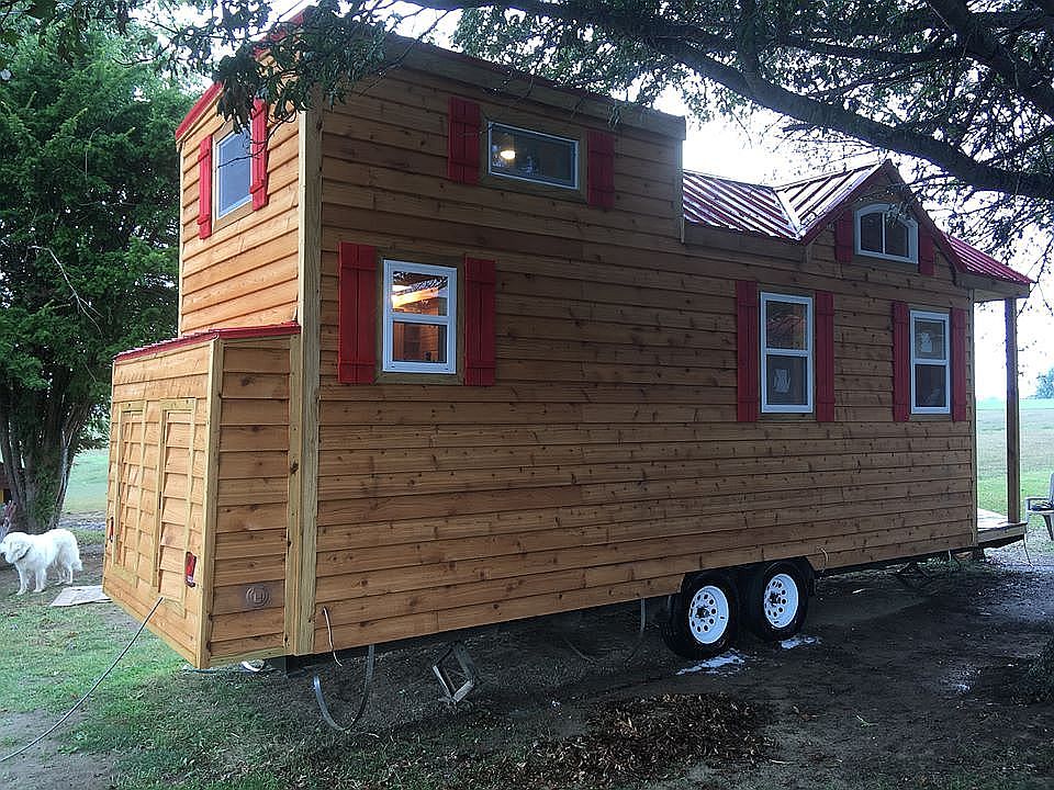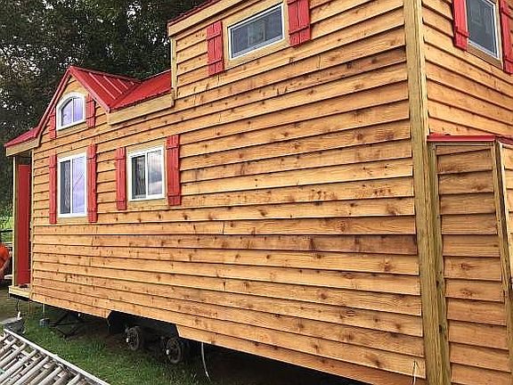 The Tiny House "The Wee Castle" A Tiny House with a BIG CHARACTER!! 246 sq. ft. of luxurious country style living. Beautiful cedar siding and gorgeous pine interior with sustainable bamboo flooring. Cathedral ceiling with ceiling fan/light. Front porch with attractive porch light and railing. Full glass front door for your viewing pleasure and brings natural lighting inside. Apartment size frig and double burner cooktop. Full size shower with rainfall shower head. Composting toilet. Air/heat unit. Stairs with storage. 8 x 9 ft. sleeping loft with reading lights on both sides of your king or queen mattress. Double pane windows with low e glass framed by country style shutters. Tankless water heater. Handmade cabinetry and spice racks as well as all window and door frames. Large storage unit built on back of house not included in footage. And much more. It keeps posting lot size. However, this is a Tiny House on Wheels. Absolutely no acreage comes with this Tiny House.