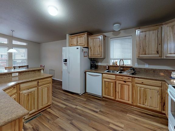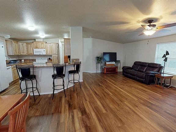 Almost new single-level home located in Aspen Creek subdivision on Redmond's south side. 2017 construction and very lightly lived in. Location is convenient to Bend and Hwy. 97. Spacious floor plan with vaulted ceilings, upgraded appliances, and attached garage. Large covered front porch. Low maintenance landscaping. All flooring is solid surface. Large soaking tub in master bathroom. HOA includes water. RV parking available in neighborhood.
